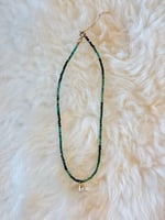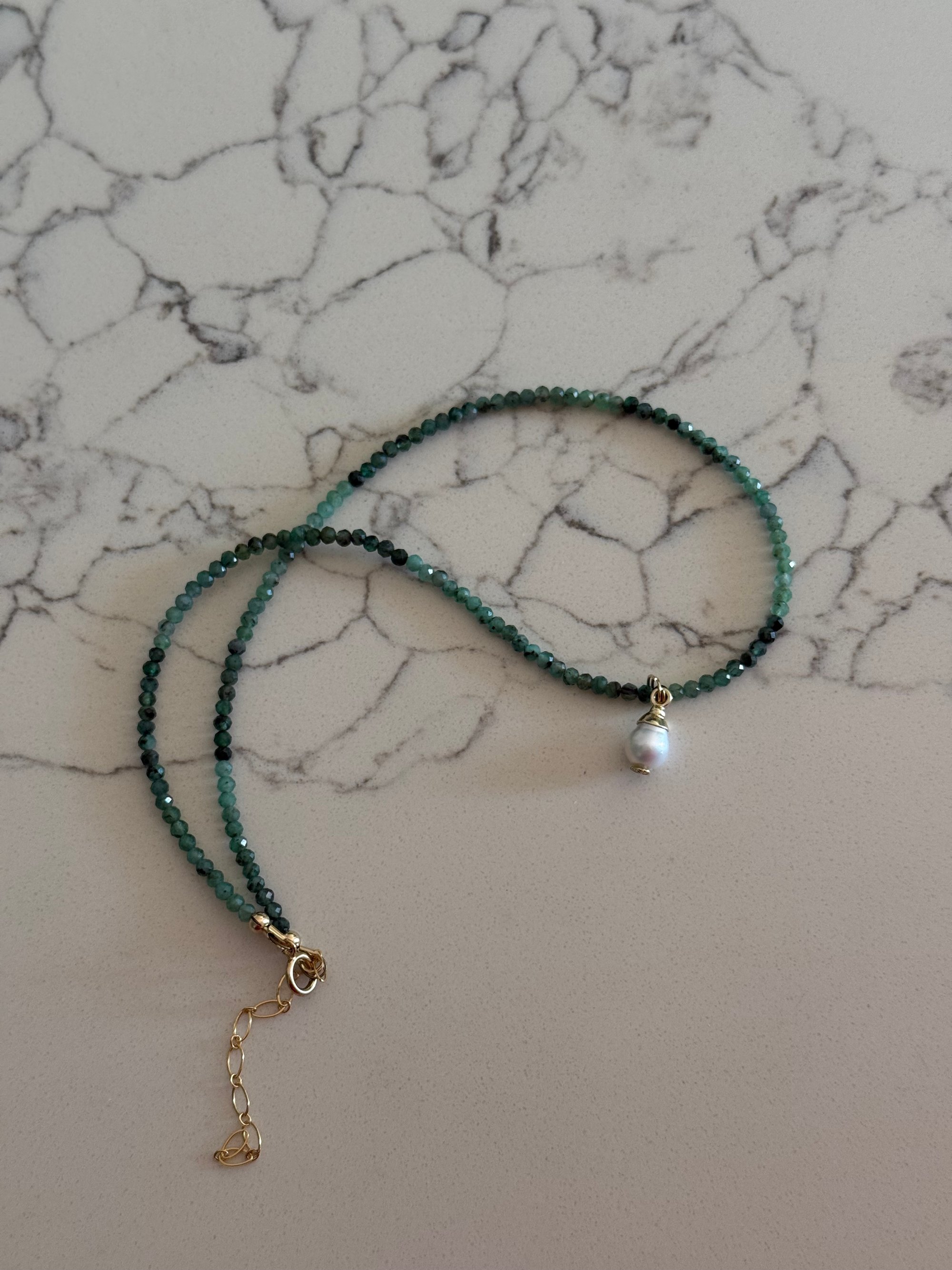 Raw Emerald Choker with Freshwater Pearl Charm