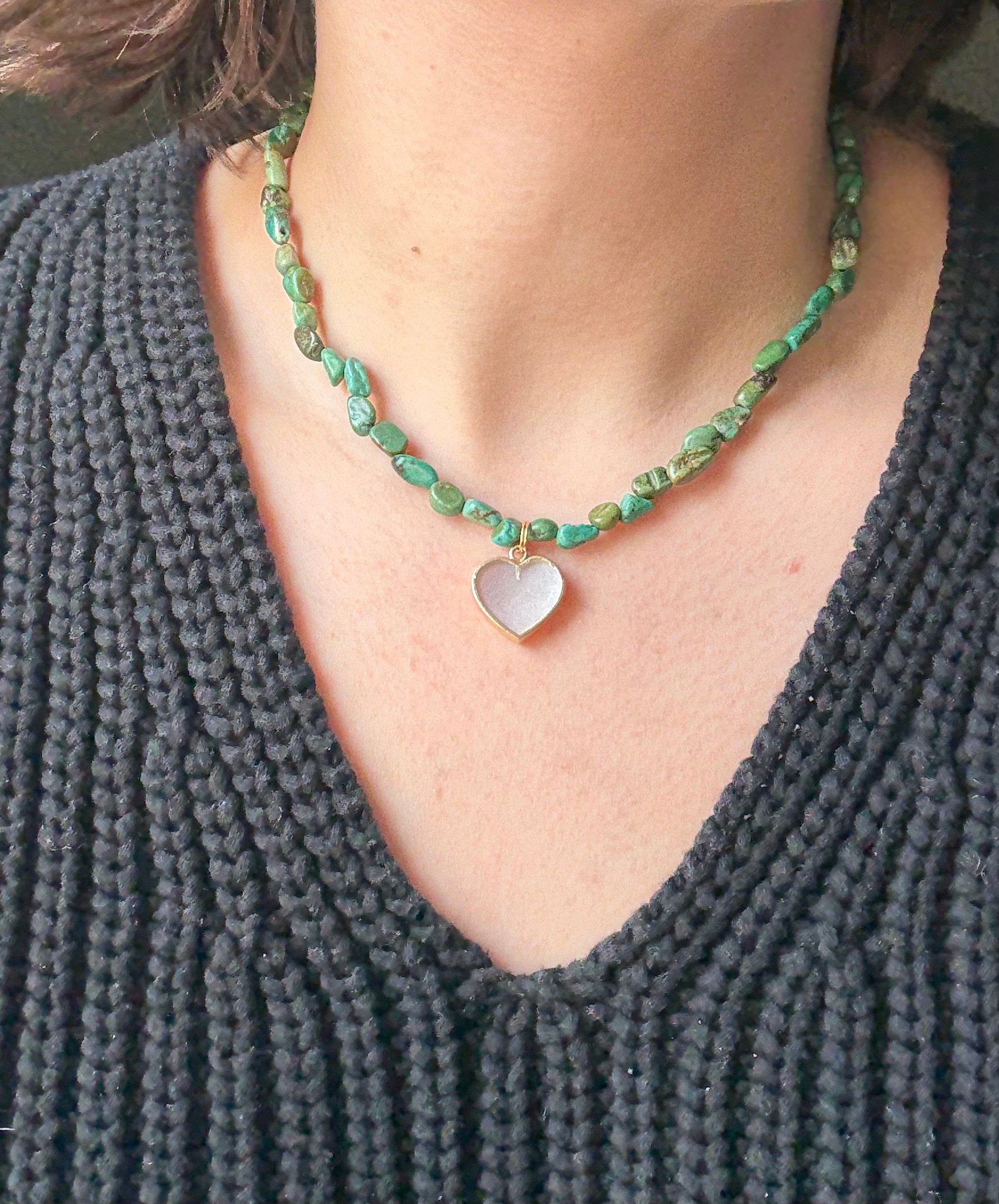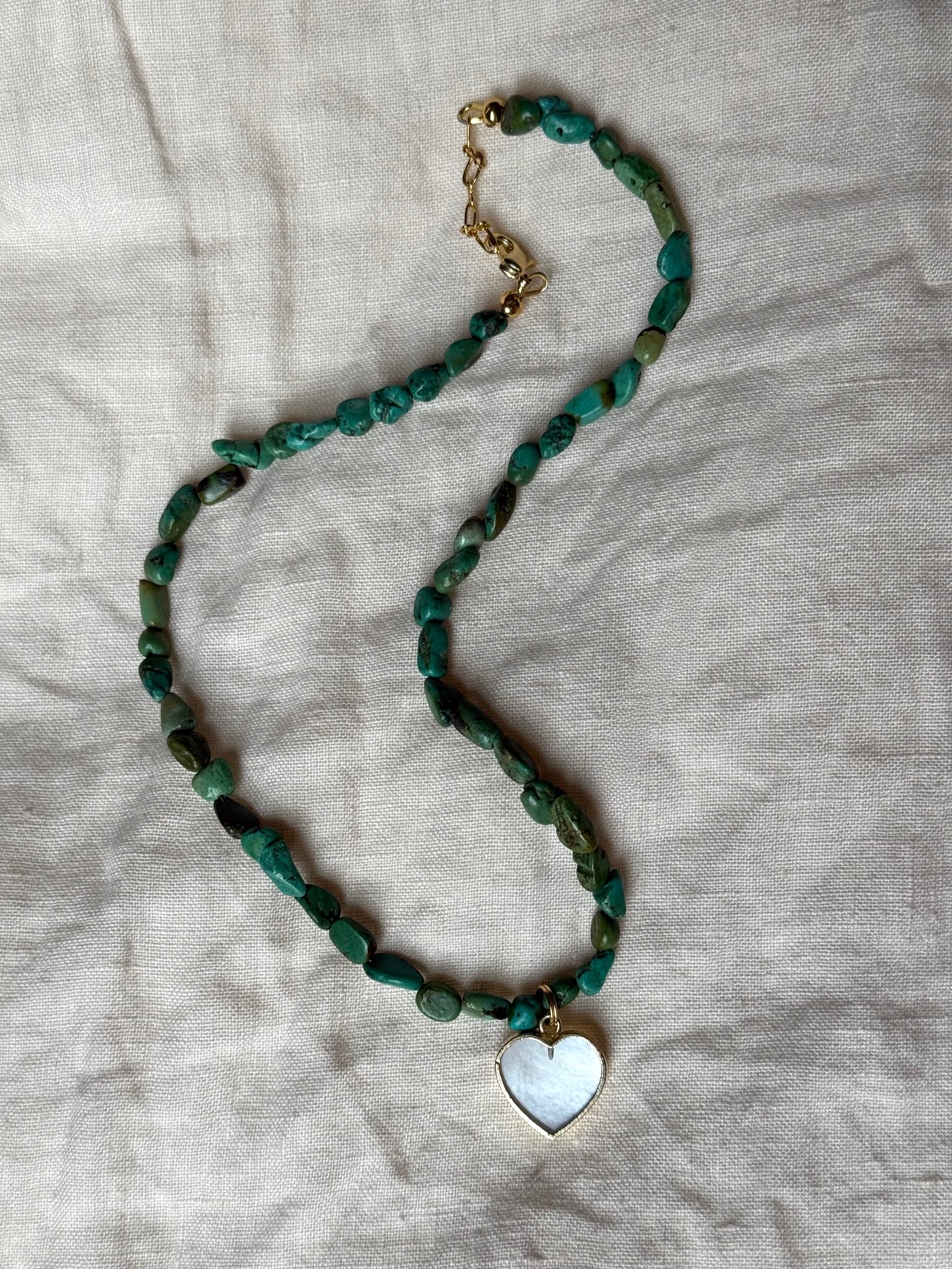 Turquoise Necklace with Mother of Pearl Heart Charm