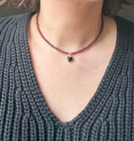 Garnet (Dark Red) with Onyx Heart Charm Necklace / Gold plated findings / 15-17” with extender chain