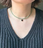 Ombre Raw Emerald (Green) with Onyx Heart Charm Choker / Gold filled findings / 14-16” (extender chain) Modeled at 14”