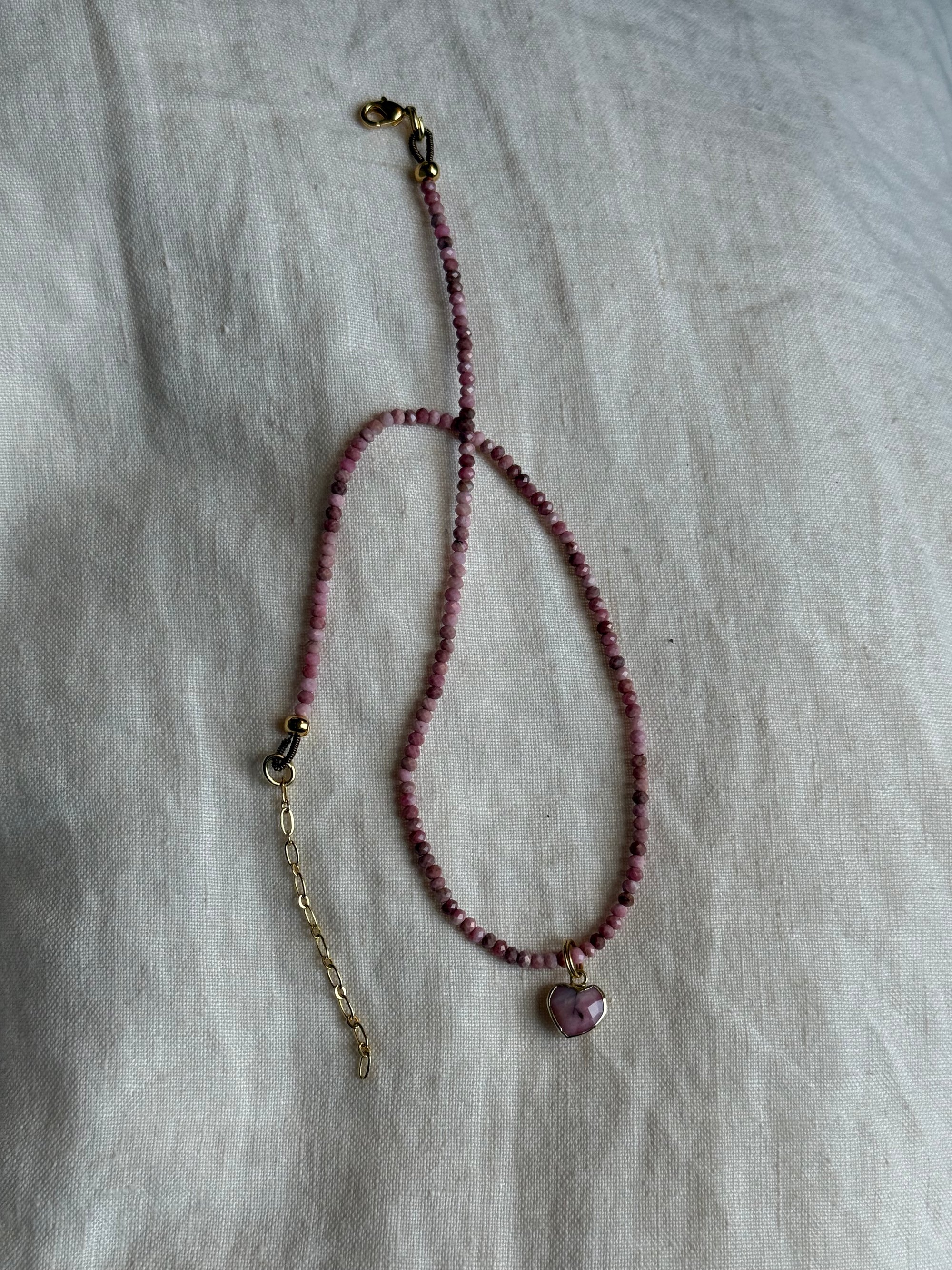 Rhodonite with Opal Heart Charm Necklace